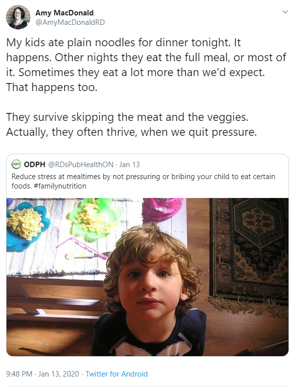 So what, do I do when they add new foods back? Honestly, I wanted to celebrate, but I didn’t. The research shows, when we get too excited about what they eat or don’t eat, it puts pressure on them. My goal is to help my kids learn to eat, in a matter of fact way, to support them to develop a healthy relationship with food and eating.
